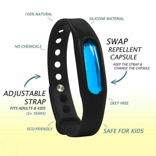 5x Myggeafvisende armbånd Myggeafvisende bånd Giftfri sorte